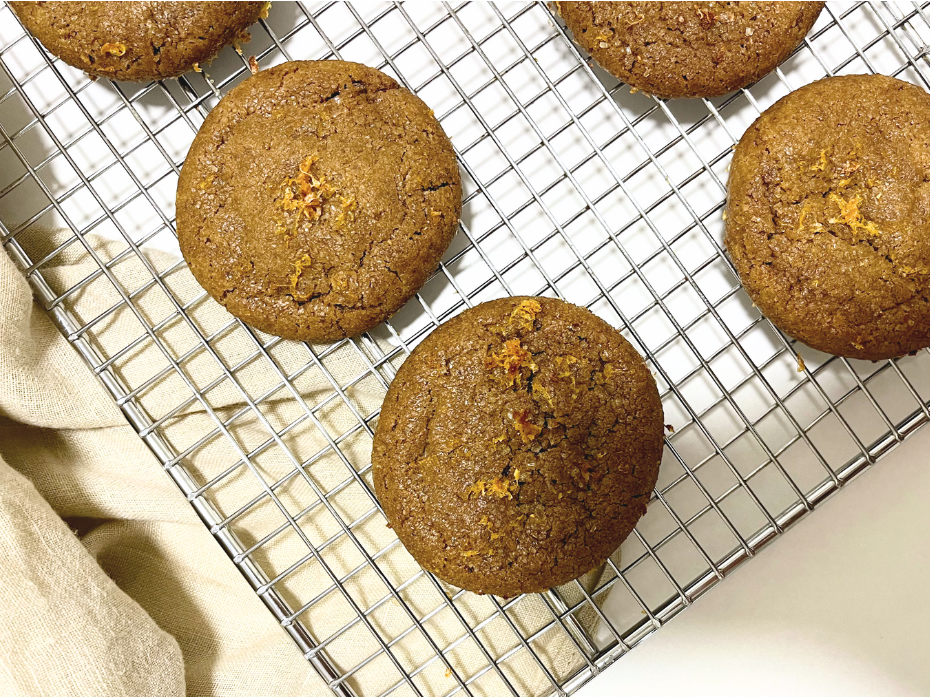 העוגיות הללו הן וריאציה לעוגיות ג׳ינג׳ר סנאפ הנפוצות בעונה הזאת של השנה ברחבי העולם אך עם תוספת קטנה של תפוז, זרעי כוסברה וחמאה חומה שמוסיפים עניין לעוגיה הקלאסית.