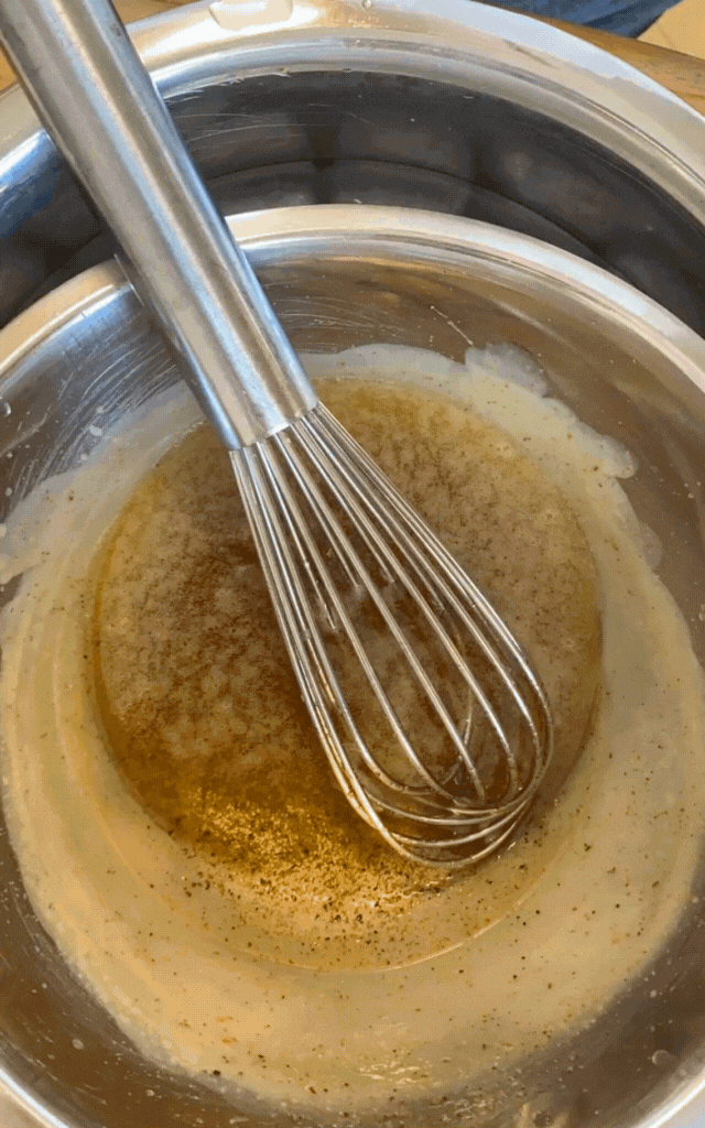8. מוסיפים את שאר החומרים ומערבבים רק עד שמתקבלת תערובת אחידה.
